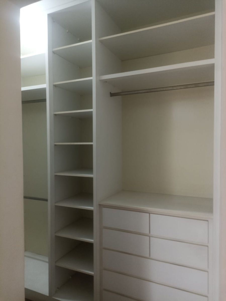 Dormitórios com armários e sacadas.